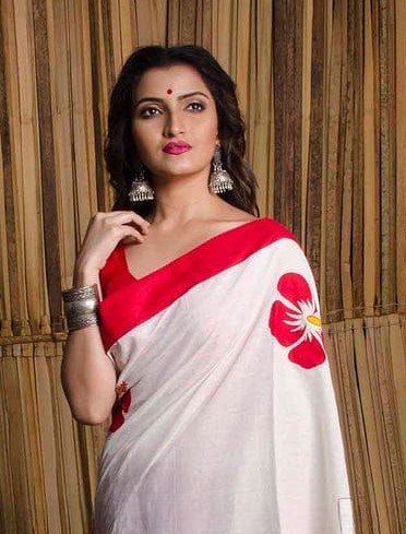 Hand print Sharee উন্নত মানের হাফসিল্ক শাড়ি -হ্যান্ড প্রিন্টের কাজ করা